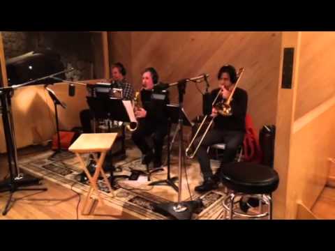 Tracking horns at Pat Dillett"s invisible studio: Curt Ramm trumpet, Stan Harrison saxophone, Dan Levine trombone